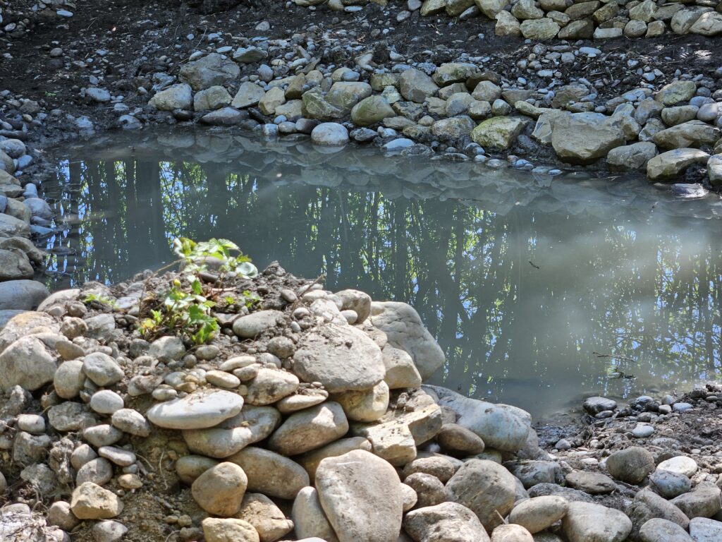 Derweil wurde unser Gewusel von 8 kritischen Froschaugen aus dem Wasser heraus beobachtet, die bereits ihre neu aufgewertete Heimat wiedergefunden hatten. Zum Schluss verabschiedete sich der Froschmann mit einem lauten Quak. Es sollte wohl Danke an all die fleissigen Helfer heissen.