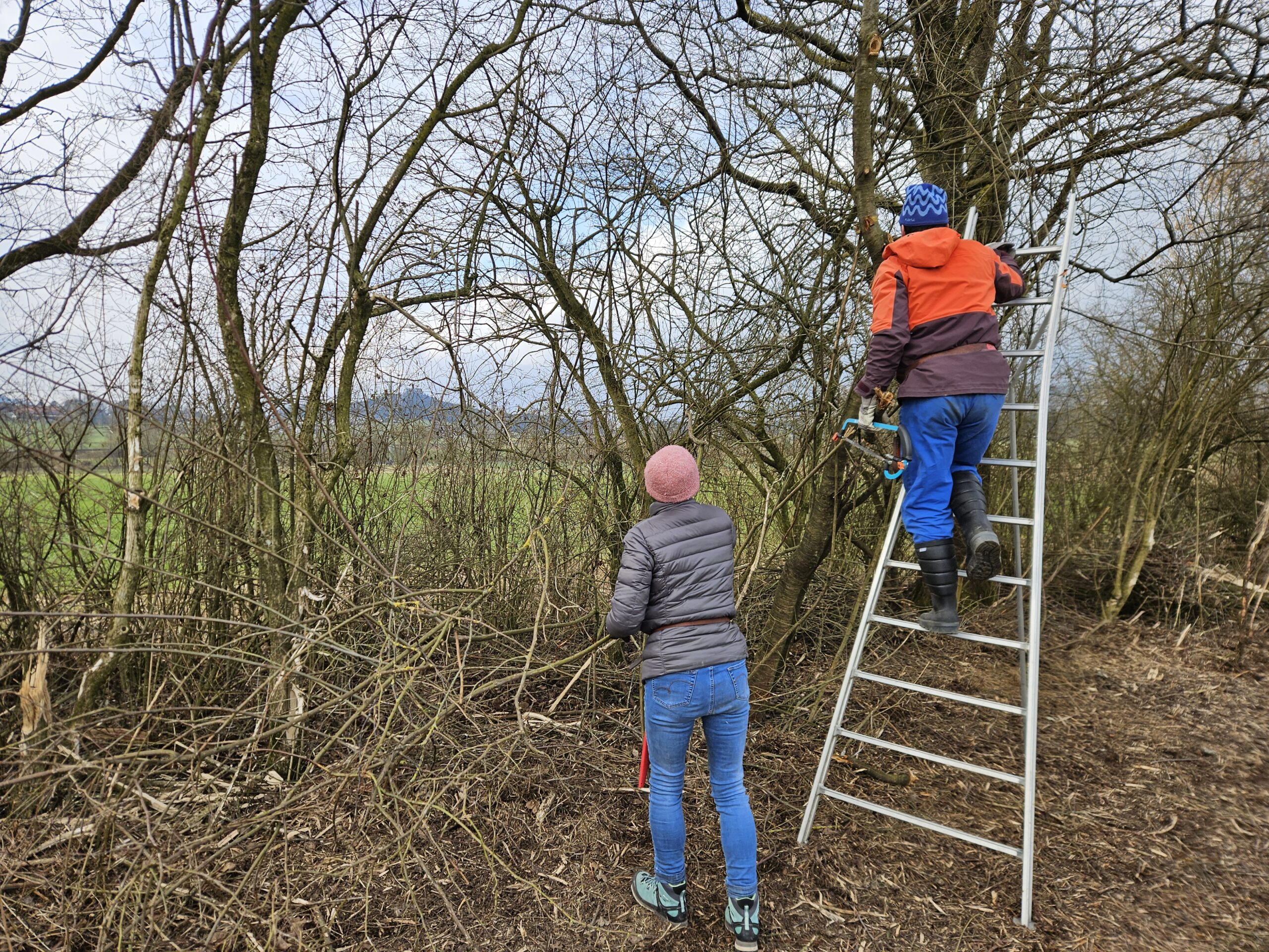 Zusammen mit der Naturwerkgruppe des WWF schneiden wir die Hecke und tragen das Schnittgut weg oder bilden damit Asthaufen.