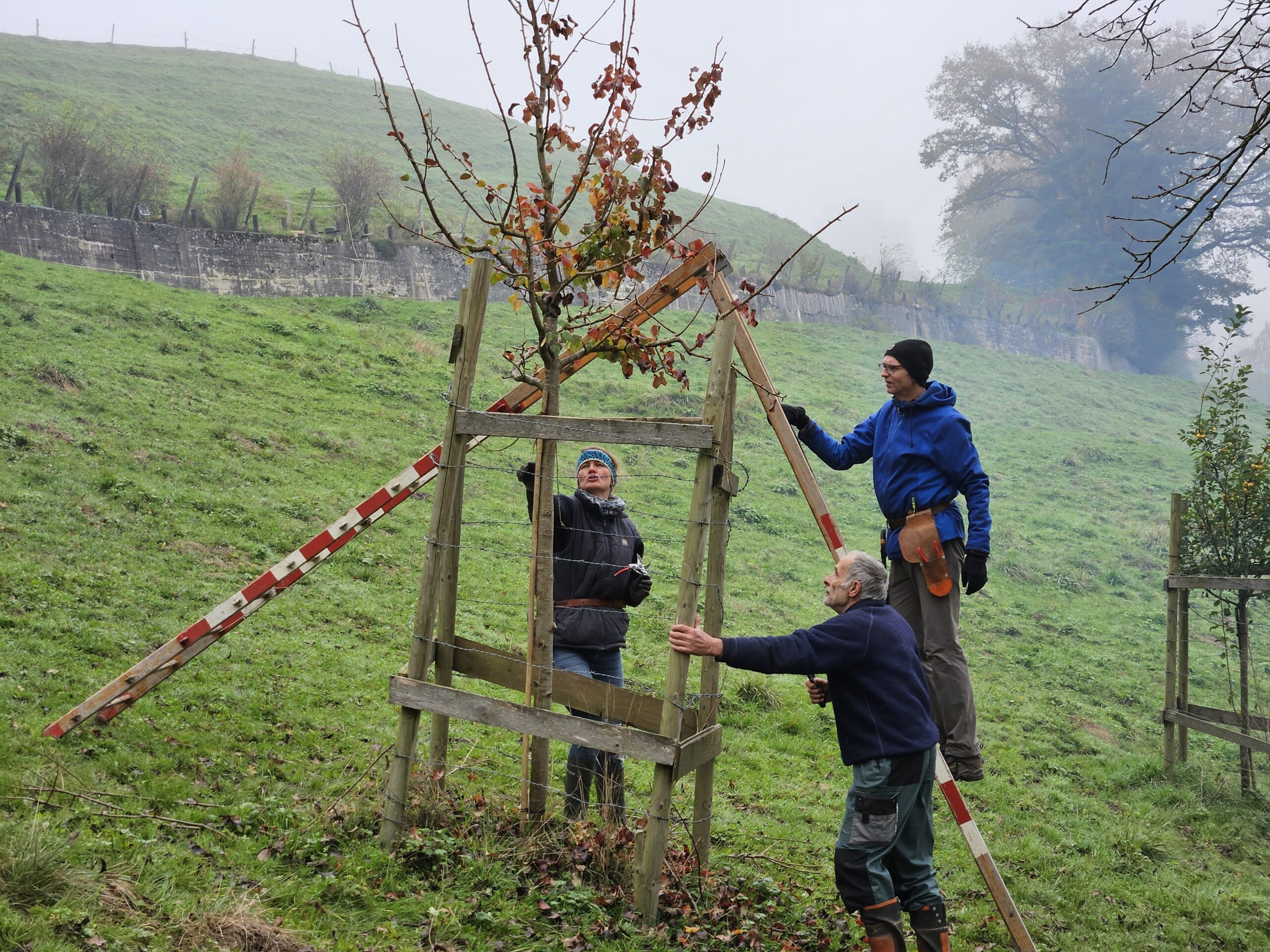 Einsatzziel: Zusammen mit dem NVV Laupen und dem WWF-Bern: Es sollen Wildobstbäume und Wildstauden gepflanzt, gepflegt und geschnitten werden. Ausserdem werden kleinere Steinhaufen erstellt.
