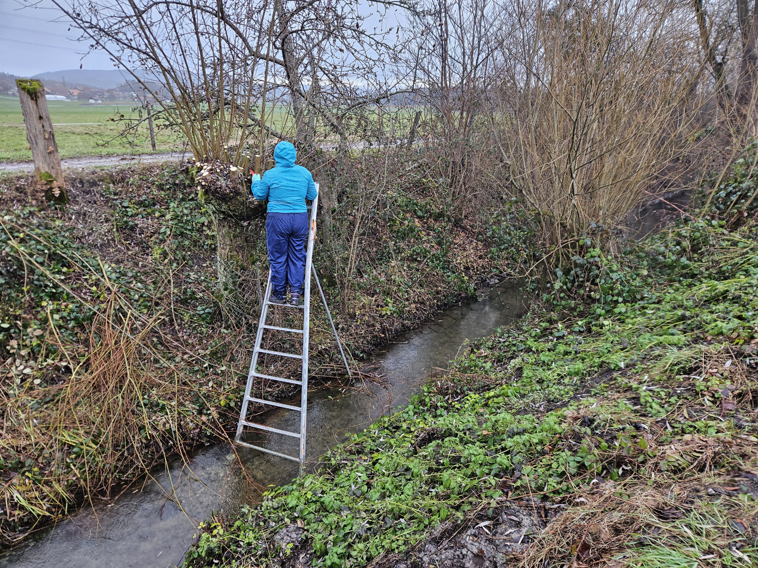Die mehr als 500 m lange Hecke entlang des Steckibachs wird vom MuGüRü zusammen mit dem WWF Bern gepflegt, damit sie ihren grossen Artenreichtum behält. Der Biber hat sich hier niedergelassen und einen Teil des Steckibachs gestaut. Dies ist eine von zwei Populationen in der Gemeinde Worb. Am Bach befindet sich auch ein Informationspfad, der über die Aufwertungsmassnahmen und die heimischen Straucharten informiert.