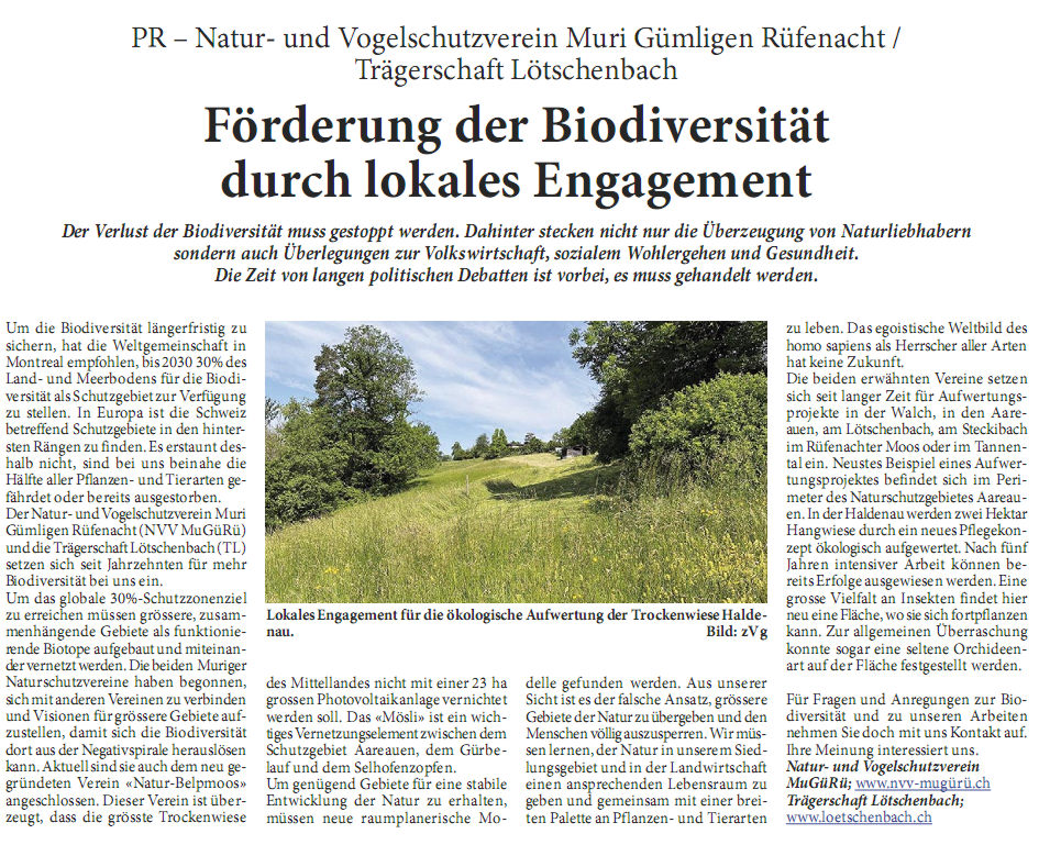 «Biodiversität ist unabdingbar für ein gutes, menschliches Leben». Interview mit unserem Präsidenten, Ueli Scheuermeier.