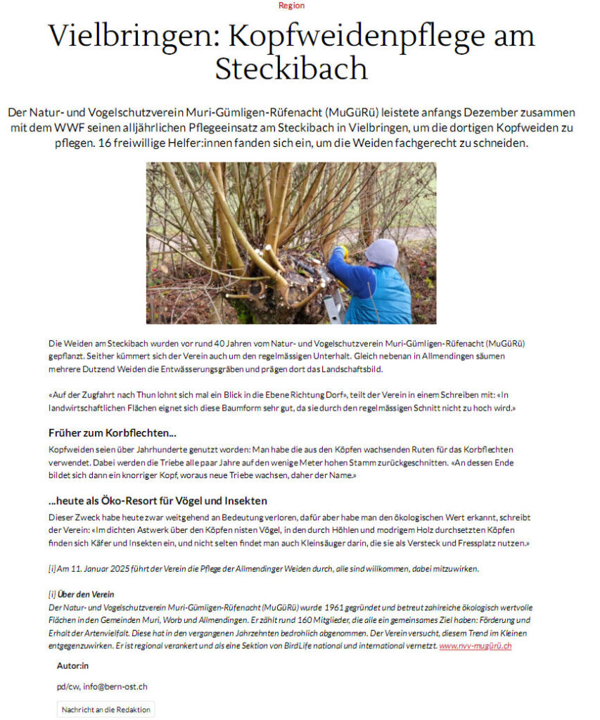 Dotterweiden beim Fähribeizli. Bericht über unseren Einsatz in den Aareglunggen vom Januar 2024