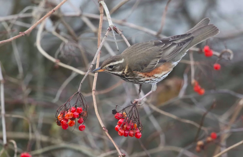 André Karrer, MuriRotdrossel – ein Wintergast aus dem Norden am Gemeinen Schneeball
