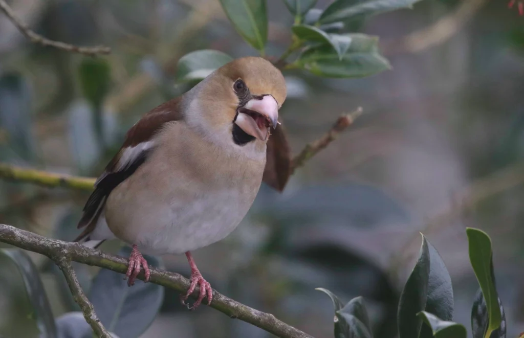 André Karrer, MuriKernbeisser-Weibchen am Zerquetschen von Feldahorn-Samen