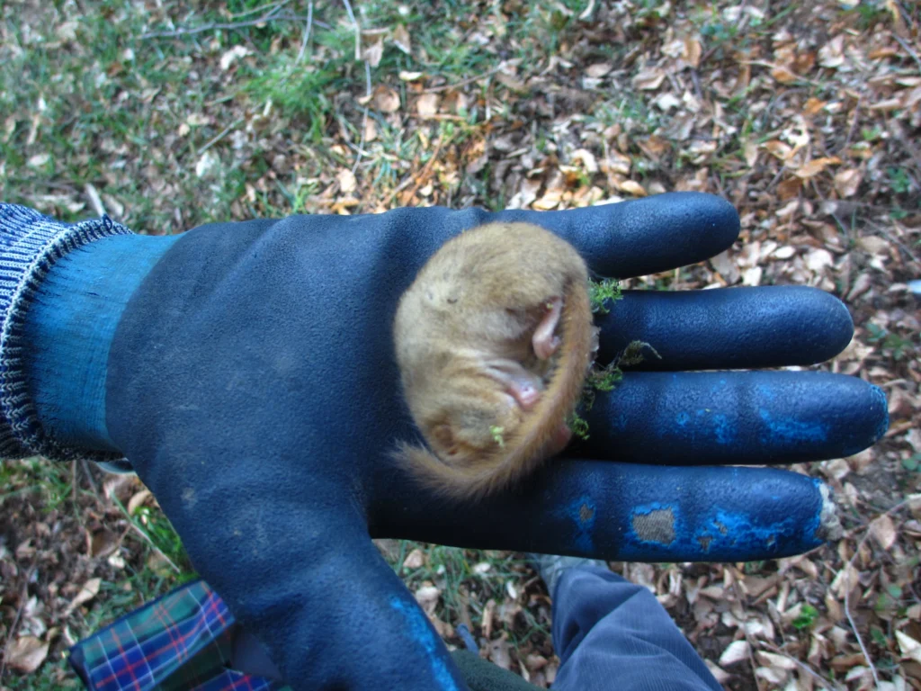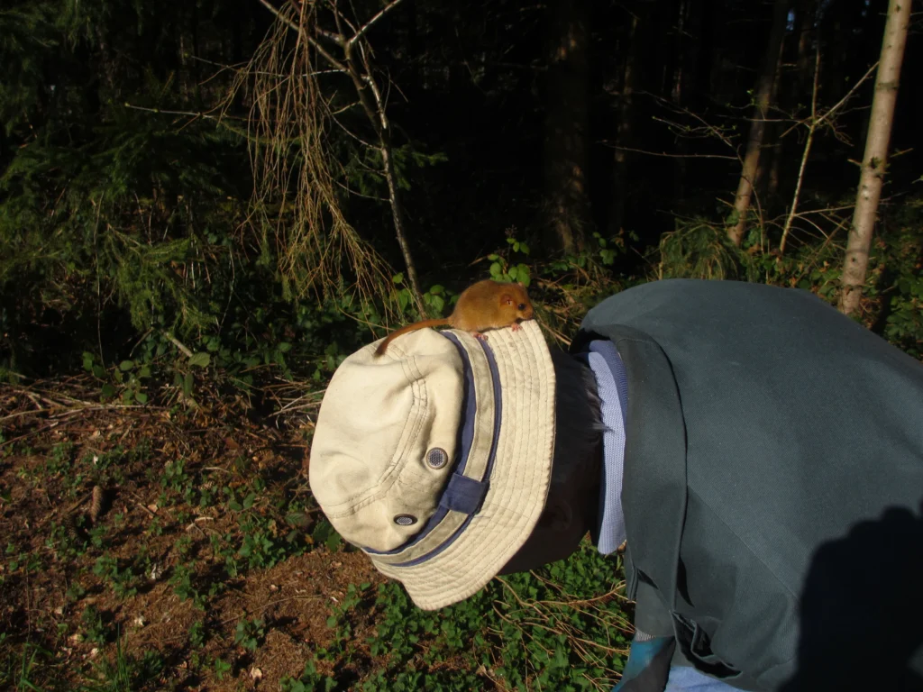André Karrer, Muri«Gestern (1.4.21) habe ich mit Fredy Essig Nistkästen kontrolliert. Von den 15 Kästen, wo sich im Herbst Haselmaus-Nester befanden, waren noch in 5 Kästen 3 schlafende und 2, die beim öffnen heraus und auf mich kamen und später wieder in die Kästen gingen.»
