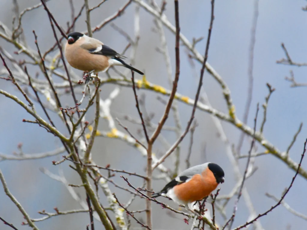 «Dieses Dompfaffen Paar konnten wir von unserer Wohnung (Balkon) aus beobachten und dann auch fotografieren. Es sind bereits 5 Jahre verflossen, als wir sie bei uns das letzte Mal im Seidenberg sichten konnten. Einfach nur wunderbar!!»