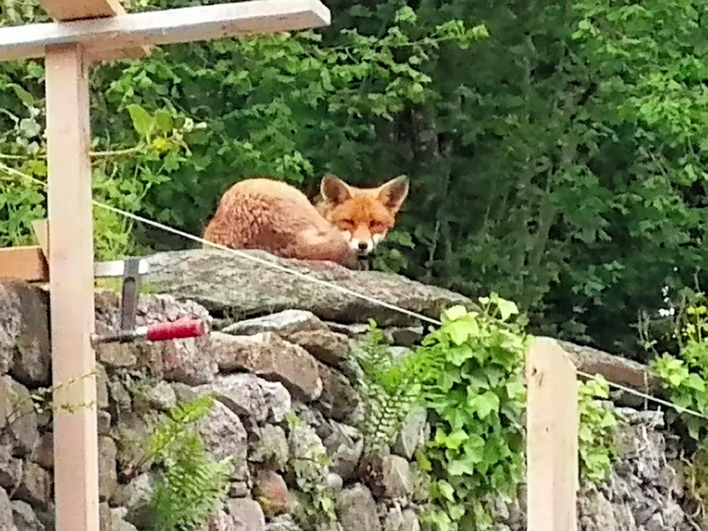 Carl’Antonio Balzari, Muri«Es gibt nicht nur Kirchenmäuse sondern auch Kirchenfüchse. Neben der Kirche Muri wird die Natursteinmauer wieder hergerichtet. Morgens um sieben kommen jeweils die Steinmetze. Vermutlich fällt von ihrem Znünibrot ab und zu etwas hinunter, was der Fuchs dann gerne «aufräumt».